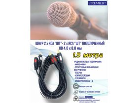 Шнур 2 x RCA "шт" - 2 x RCA "шт" "позолоченный" OD4.0x8.0мм 1.5метра 101718855177