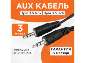 Кабель PERFEO Jack 3.5 мм вилка - Jack 3.5 мм розетка, длина 3 м. (J2202) 101760236911