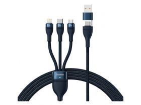 Кабель для быстрой зарядки и передачи данных BASEUS One-for-three, USB to Lightning 2.4A/MicroUSB 18W/Type-C 100W, 1,2м, Синий, CASS030003 101909653957