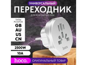 Сетевой переходник адаптер для евророзетки Hoco AC6 10А 250В белый 103676423595