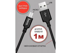 Кабель hoco microUSB 1 метр, быстрая зарядка, зарядный шнур, провод для телефона 101903247953