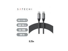Кабель Satechi Type C to Type C 5A PD 100W в оплетке 0.25 м, цвет серый (ST-TCC10M) 4579750785
