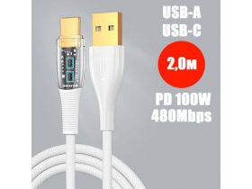 Кабель PALMEXX USB-A to USB-C, PD 100W, длина 2.0м, белый 102343595875
