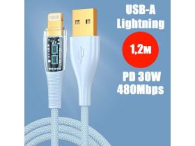 Кабель PALMEXX USB-A to Lightning, PD 30W, длина 1.2м, голубой 102342125854