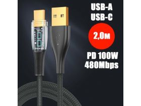 Кабель PALMEXX USB-A to USB-C, PD 100W, длина 2.0м, чёрный 102341339213