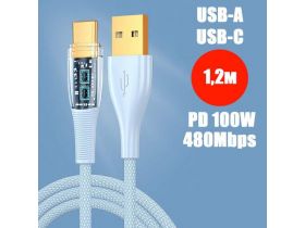 Кабель PALMEXX USB-A to USB-C, PD 100W, длина 1.2м, голубой 102341339214