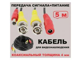 Кабель для видеонаблюдения VC-05 коаксиальный 5 метров толщина 4 мм 103743683432