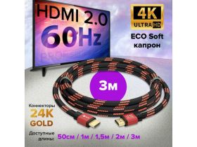 HDMI видео кабель 3 метра GCR Ultra HD 4K 3D 18 Гбит/с черно-красный 24K GOLD для приставки 102506087759