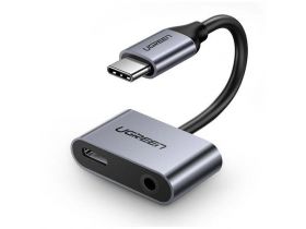 Переходник/адаптер UGreen CM193 USB Type-C (m) - USB Type-C (f) + 3.5mm Audio (50596), длина 0.1 м, 1 шт., серый 1774383361