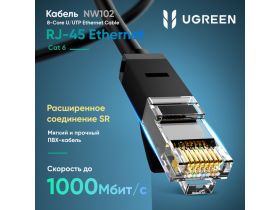 Кабель сетевой UGREEN NW102 (50175) Cat 6 8-Core U/UTP Ethernet Cable. Длина: 3м. Цвет: черный 103280139837