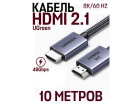 Аудио и видео кабель HDMI 2.1 UGreen 8К/60Hz 48 Gpbs 10 м, серый, черный 4456211487