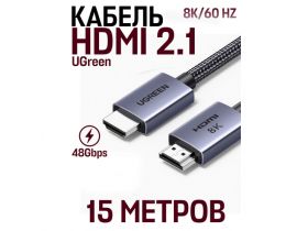 Аудио и видео кабель HDMI 2.1 UGreen 8К/60Hz 48 Gpbs 15 м, серый, черный 4683263136