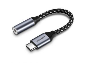UGREEN Переходник UGREEN AV142-30632, Type-C (M) to AUX 3.5mm (F), аналоговый звук; металлический, с проводом 10 см, Gray 101970076883