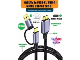 Кабель 2 в 1 USB-C / USB-A - microB для внешних дисков нейлон 1 м 4440442351