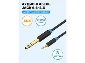 Кабель Vention Jack 6.3 mm M - Jack 3.5 mm M (BABB), длина 3 м, 1 шт., черный 100530456878