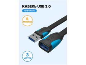 Удлинитель Vention USB 3.0 AM/AF, плоский (VAS-A13), длина 3 м, черный 100632873377