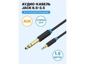 Кабель Vention Jack 6.3 mm M - Jack 3.5 mm M (BABB), длина 1.5 м, 1 шт., черный 100530456876