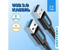 Кабель для соединения USB 3.0 AM/AM (папа), длина 2 м Vention переходник для ноутбука, телевизора, приставки, арт. CONBH 101882803142