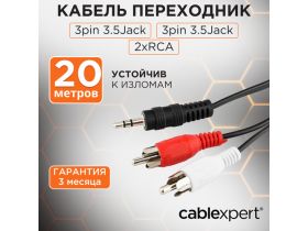 Кабель Cablexpert mini Jack 3.5 - 2 x RCA (CCA-458), длина 20 м, 1 шт., черный 100722910947