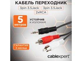 Кабель Cablexpert mini Jack 3.5 - 2 x RCA (CCA-458), длина 5 м, 1 шт., черный 100722910946