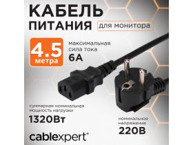 Кабель Cablexpert PC-186-15, площадь сечения 0.5 кв. мм, длина 4.5 м, 1 шт., черный 100602632026