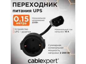 Переходник питания Cablexpert черный C14-евророзетка 3х0.75мм2 10А с заземлением, 15cм PC-SFC14M-01 103552497719