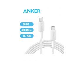 Кабель Anker PowerLine 322 USB-C to USB-C, 3A 60W в оплетке 3 м, цвет белый (A81F7G21) 102953340241