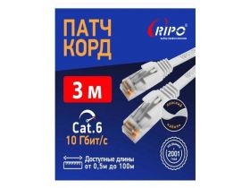 Кабель для подключения интернета 3 м ютп4 кат6 лан провод интернет, патч корд плоский, витая пара UTP4 Cat6 RJ45 3 метра RIPO ССА белый 003-300140 103778665010