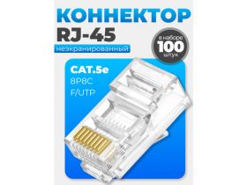 Коннектор RJ-45 (8p8c), cat.5e UTP, неэкранированный, быстрозажимный, комплект 100 штук 4594240684