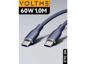 Кабель 1м 3A 60W Voltme PowerLink Rugg CTC USB Type-C - Type C, провод для быстрой зарядки телефона Samsung, Iphone, зарядный шнур синий Online Box 102492765944