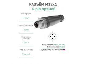 Разъём М12 4 pin прямой / вилка (папа) / PG9 (4-8 мм диамет под кабель) / модель RAZM-M12-C4-PG9 103587309395