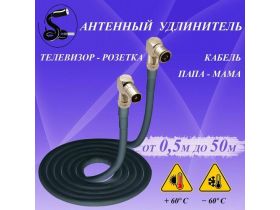 Кабель антенный телевизионный 8 м. папа (угловой)-мама (угловой) чёрный. Кабель удлинительный. Кабель розетка-телевизор. Штекер-Гнездо. 103589506604