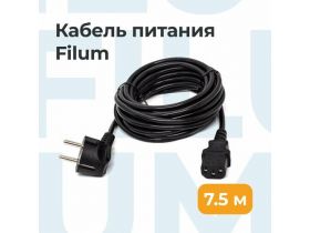 Кабель питания Filum FL-PC10-EU-C13-7.5M CEE 7/7- С13, 3х1.0мм², 220В, 10A, чёрный, 7.5м 101707315771