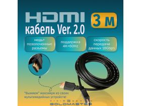 Кабель GoldMaster HDMI 3м Шнур HDMI - HDMI - 3м Ver 2.0, GoldMaster с позолоченными коннекторами 101715722533