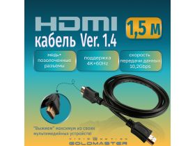 Кабель GoldMaster HDMI 1,5м Шнур HDMI - HDMI -1,5м, Ver 1.4, GoldMaster с позолоченными коннекторами 101714312075