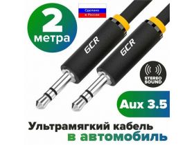 GCR AUX кабель в машину 2м аудио jack 3,5mm/jack 3,5mm черный, желтая окантовка, ультрагибкий, экран, стерео 103030151185