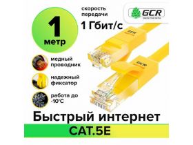 Патч-корд UTP cat.5e 1 Гбит/с RJ45 LAN CCA кабель для интернета контакты 24K GOLD (GCR-LNC500) желтый 1.0м 103042073649