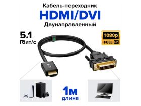 GCR Кабель 1.0m HDMI-DVI черный, OD7.3mm, 28/28 AWG, позолоченные контакты, 19M / 25M Dual Link, тройной экран 100913265454
