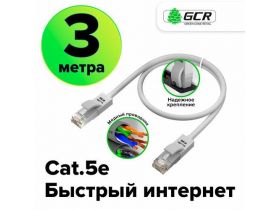 Патч-корд UTP cat.5e 1 Гбит/с RJ45 LAN CCA компьютерный кабель для интернета контакты 24K GOLD (GCR-LNC500) серый 3.0м 102183287363