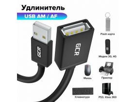 Удлинитель GCR USB - USB (GCR-UEC5), длина 1.5 м, черный 100633076453