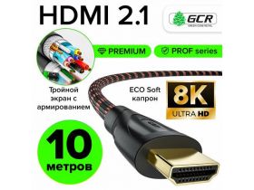 Кабель 10 метров HDMI 2.1 Soft капрон 8K 4K 3D HDR 4:4:4 48 Гбит/с для PS4 разъемы 24К GOLD (GCR-H203) черный; красный 103718589880