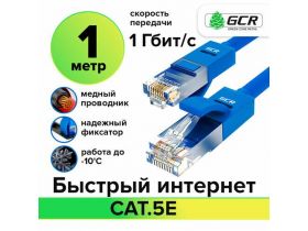 Кабель для интернета LAN UTP cat.5e 1 Гбит/с RJ45 LAN CCA контакты 24K GOLD (GCR-LNC500) синий 1.0м 103163800193