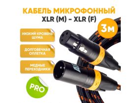 Кабель микрофонный XLR m папа - XLR f мама 3m ABs Music коммутационный шнур для микрофона / xlr кабель / провод для микрофона / микрофонный кабель / аудио кабель 4429532515