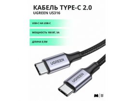 Кабель для передачи данных UGREEN US316 Type-C 2.0 Male to Type-C 2.0 Male, PD 100 Вт, 5A, цвет черный, 0,5м (20478) 4485868655