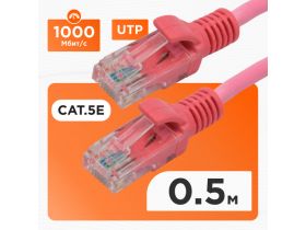Патч-корд UTP Cablexpert PP12-0.25M/RO кат.5e, 0.25м, литой, многожильный (розовый) 101212111408