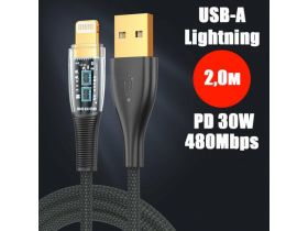 Кабель PALMEXX USB-A to Lightning, PD 30W, длина 2.0м, чёрный 102342125857