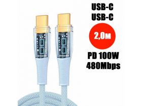 Кабель PALMEXX USB-C to USB-C, PD 100W, длина 2.0м, голубой 102406738007
