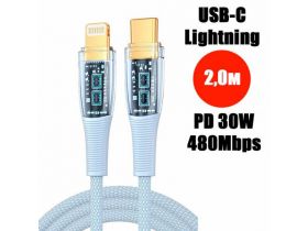 Кабель PALMEXX USB-C to Lightning, PD 30W, длина 2.0м, голубой 102406755677