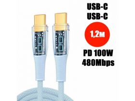 Кабель PALMEXX USB-C to USB-C, PD 100W, длина 1.2м, голубой 102406738010