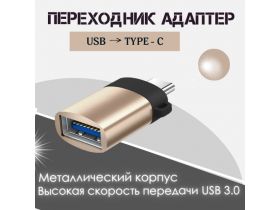 Переходник TYPE-C USB 3.0 адаптер OTG золотистый, поддержка быстрой зарядки 102342936850